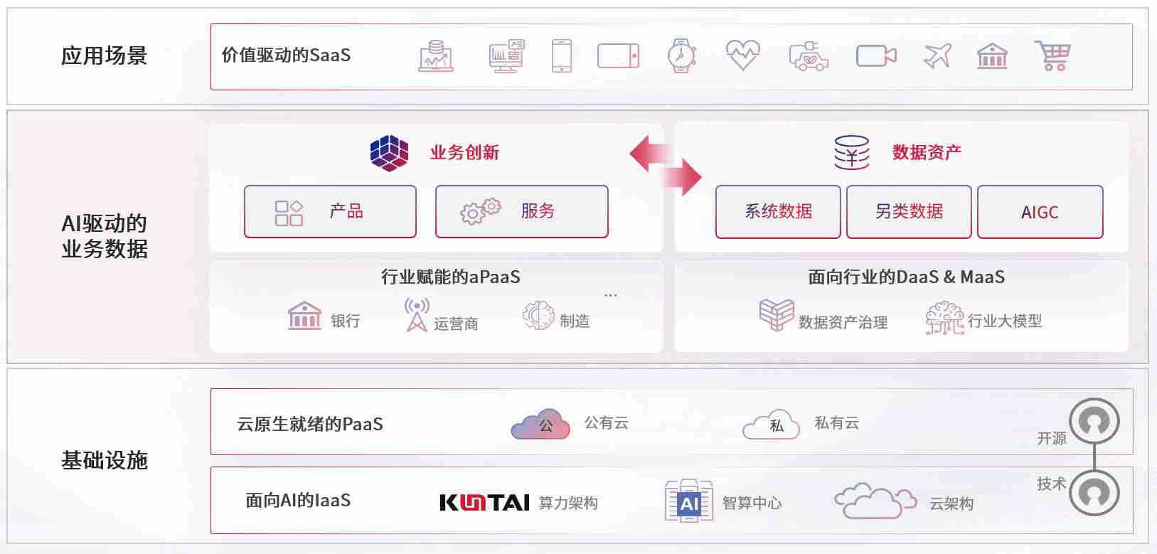 数字时代,,,围绕企业数字化转型的关键要素,,,,人生就是搏数码开创性的提出数云融合战略和技术体系框架,,,,着力在云原生、、数字原生、、、、AI原生和信创产业上架构产品和服务能力,,,为处在不同数字化转型阶段的快消零售、、汽车、、金融、、医疗、、、政企、、教育、、运营商等行业客户提供泛在的敏捷IT能力和融合的数据驱动能力,,,构建跨界融合创新的数字业务场景和新业务模式,,,助力企业级客户建立面向未来的核心能力和竞争优势,,,,全面推动社会的数字化、、、、智能化转型升级。。